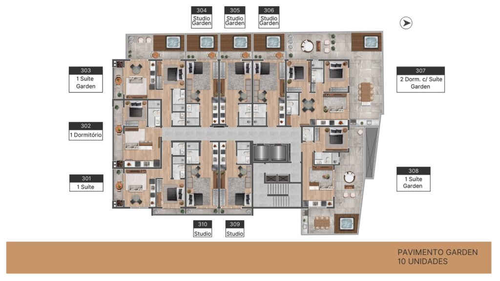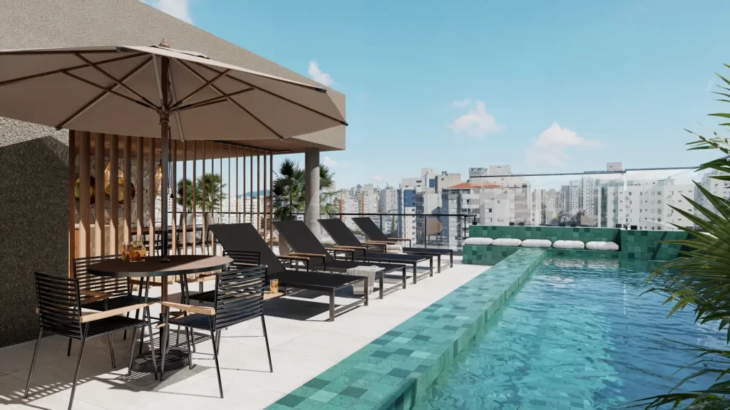 O Mirá oferece piscina, espaço gourmet, sala de jogos, academia, coworking, praça de fogo, espaço parrilla, lavanderia compartilhada e market place. Ambientes pensados para relaxar, socializar ou trabalhar com vista do Centro de Florianópolis.